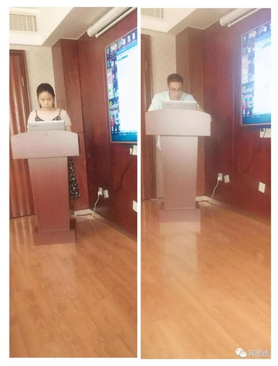 下面是我們的客戶代表上臺進行培訓內容演練。